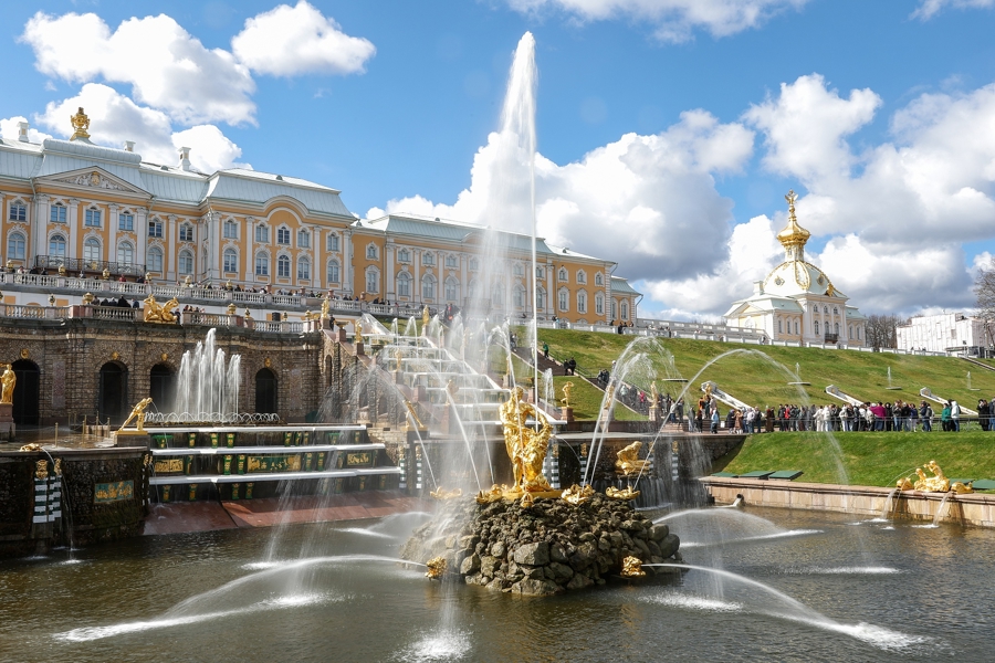 俄罗斯圣彼得堡,萨姆松喷泉在彼得夏宫前喷涌而出。