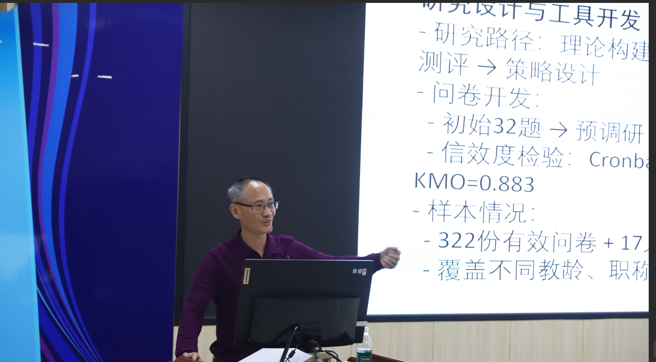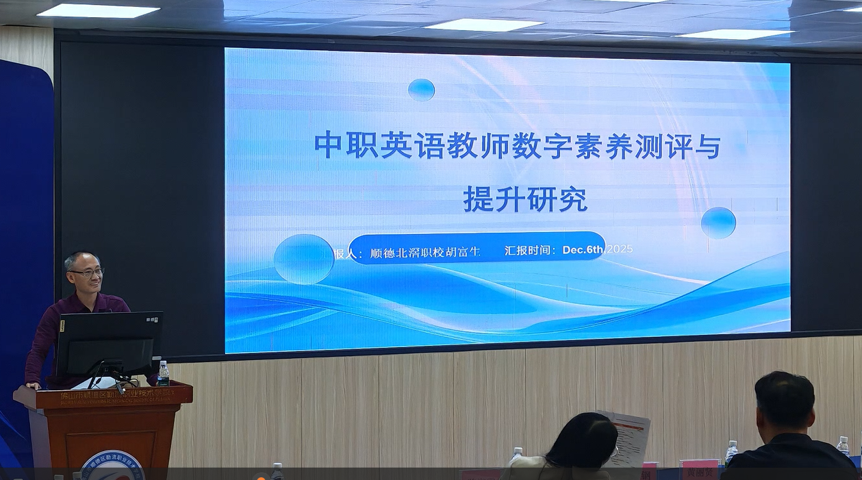 粤派名师胡富生压轴开讲:在教育数字化转型持续深化的背景下,政策层面,教育部等九部门《关于加快推进教育数字化的意见》(2025)及《职业教育数字化行动计划(2023—2025 年)》已明确要求开展教师数字素养评估与提升实践,凸显数字素养在教师专业发展中的核心地位;实践层面,人工智能、大数据等技术(如智能语音评测、虚拟仿真实训)虽已广泛应用于中职英语教学,但教师在技术融合、资源创新等方面仍存在短板,亟需针对性提升支持;研究层面,现有数字素养研究多聚焦基础教育与高等教育,针对中职英语教师的专项研究不足,提升中职英语教师数字素养已成为推动职业教育教学创新与质量提升的关键。本研究以广东省中职英语教师为研究对象,遵循“理论构建—工具开发—实证测评—策略设计”的研究路径,构建并改编了包含专业参与、数字资源、教与学、评估与反馈、赋能学习者、提升学生数字胜任力六个维度的数字素养量表。通过对322份有效问卷及17位教师访谈数据的分析,发现教师在评估与反馈方面表现突出,而在专业参与及学生数字素养培养方面相对滞后,且不同教龄与职称的教师存在群体差异。基于此,研究从分层分类赋能、资源机制保障、专业协作融合三个层面,提出了针对性地提升策略。本研究可为中职英语教师专业发展、数字化教学改革及相关政策制定提供参考,助力职业教育数字化转型实践。最后胡老师还就中职英语教师职称晋升进行了精准解读,得到与会同行们的高度认可。